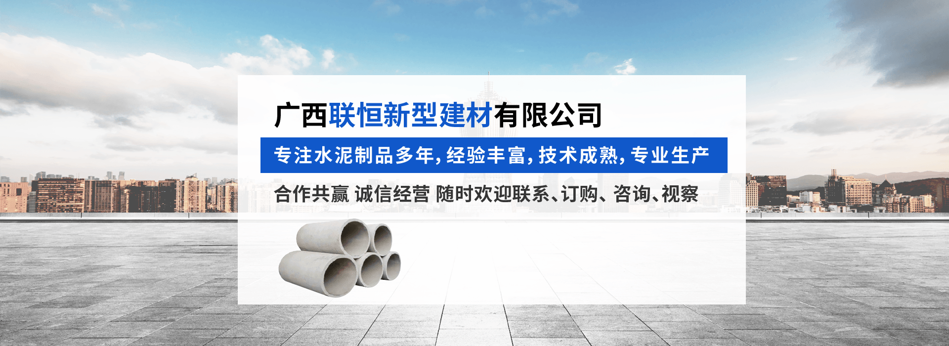 廣西聯恒新型建材有限公司成立于2017年,前身是柳州聯恒水泥制品有限公司。是柳州市較具規模的給排水管生產企業。公司自2002年以來,污水管道專項生產量率柳州之先。柳州市所有的污水處理廠管網收集,載污管網的主要供應商,柳州市較先取得工業生產許可證并由國家質量技術監督部排水管產品抽檢唯一符合資質的廠家。柳州市F型非開挖鋼筋混凝土頂管最先生產且生產量大于柳州同行的頂管生產量的總和。是進駐柳州中鐵、中交、中建、中航等央企的戰略合作伙伴。